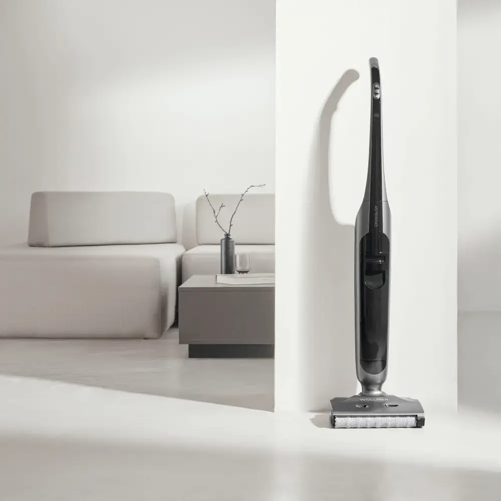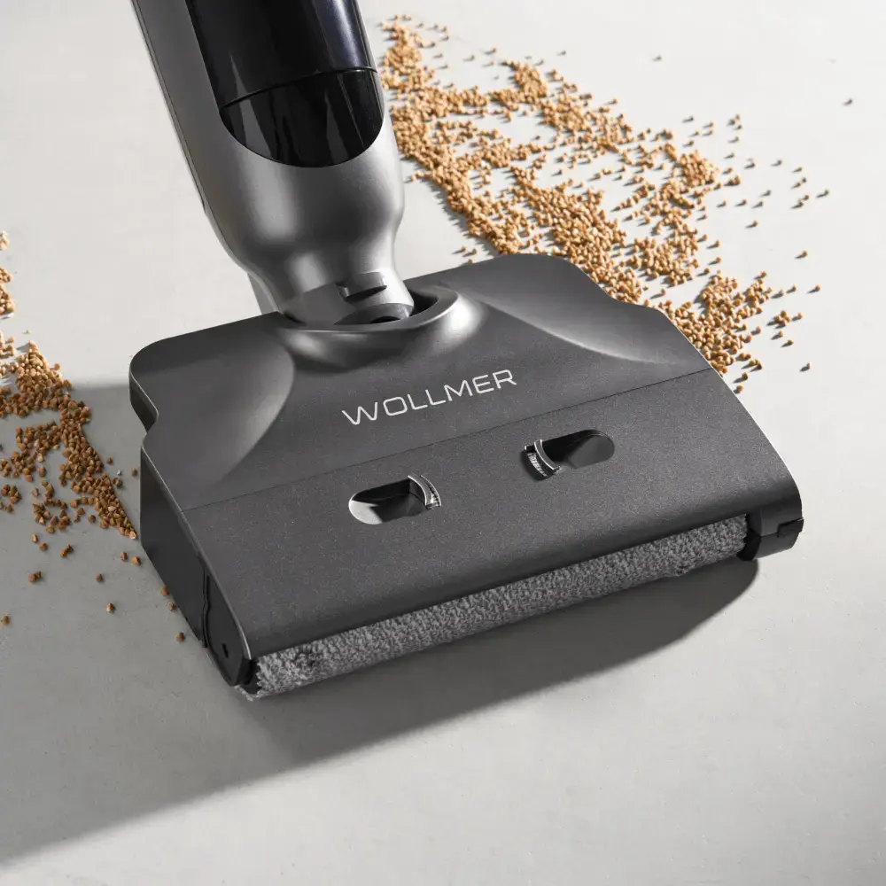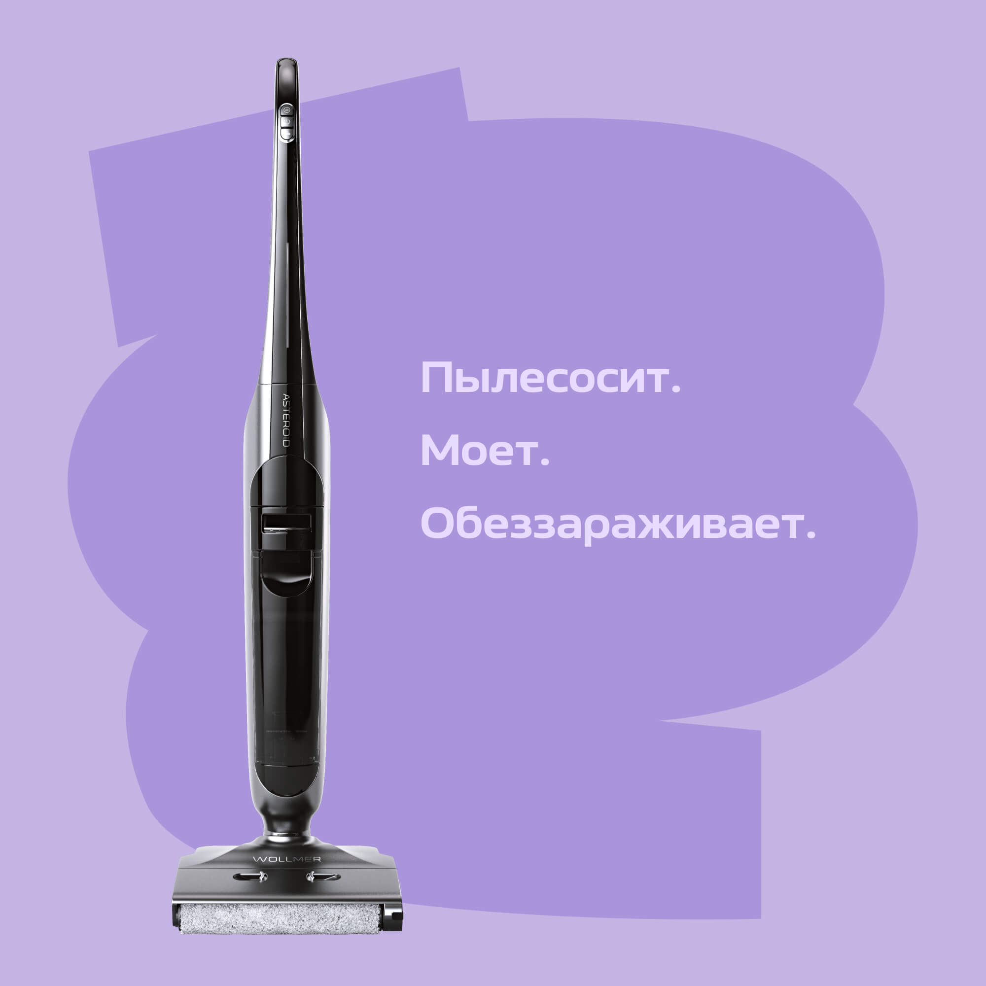 Моющий вертикальный пылесос Wollmer D800 Asteroid С мощностью всасывания 18 000 Па пылесос легко справляется как с липкими пятнами от детского питания, так и с рассыпанными хлопьями